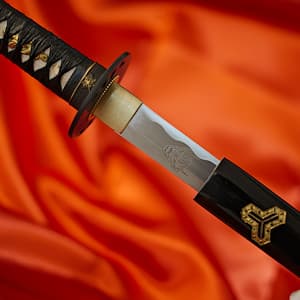 Forge Soshu Kitae, trempe sélective (véritable hamon), aiguisage à la main, saya rouge sombre, ito et sageo noirs