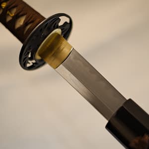 Forge Maru 1045, aiguisage mécanique, saya bois et tressage marron, ito et sageo marron clair