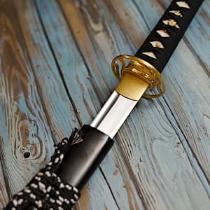 Forge Maru 1060, trempe sélective (véritable hamon), aiguisage à la main, saya noir, ito noir et sageo noir et blanc